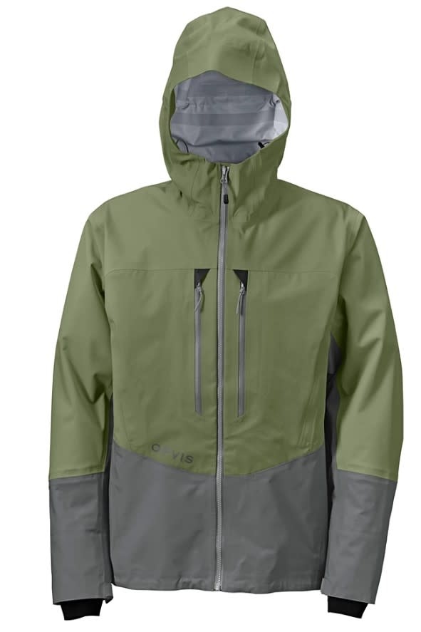 Underarm zips for unrestricted access to bibs or waders without removing jacket. Three-point adjustable storm hood.