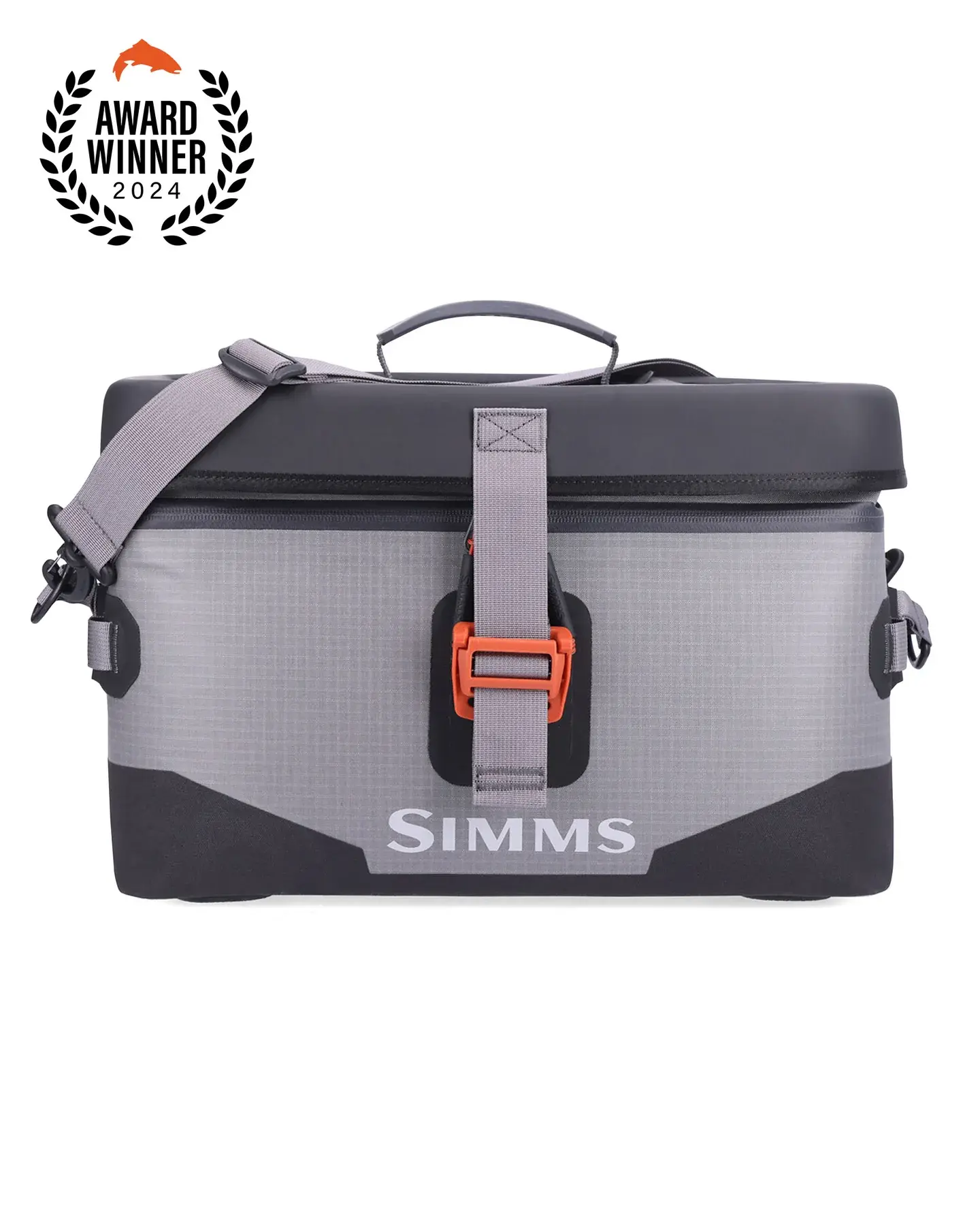 - Simms custom molded grab handle and removable/adjustable shoulder strap are included